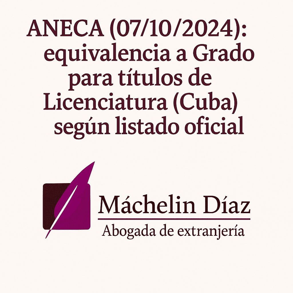 ANECA (07/10/2024): equivalencia a Grado para títulos de Licenciatura (Cuba) según listado oficial