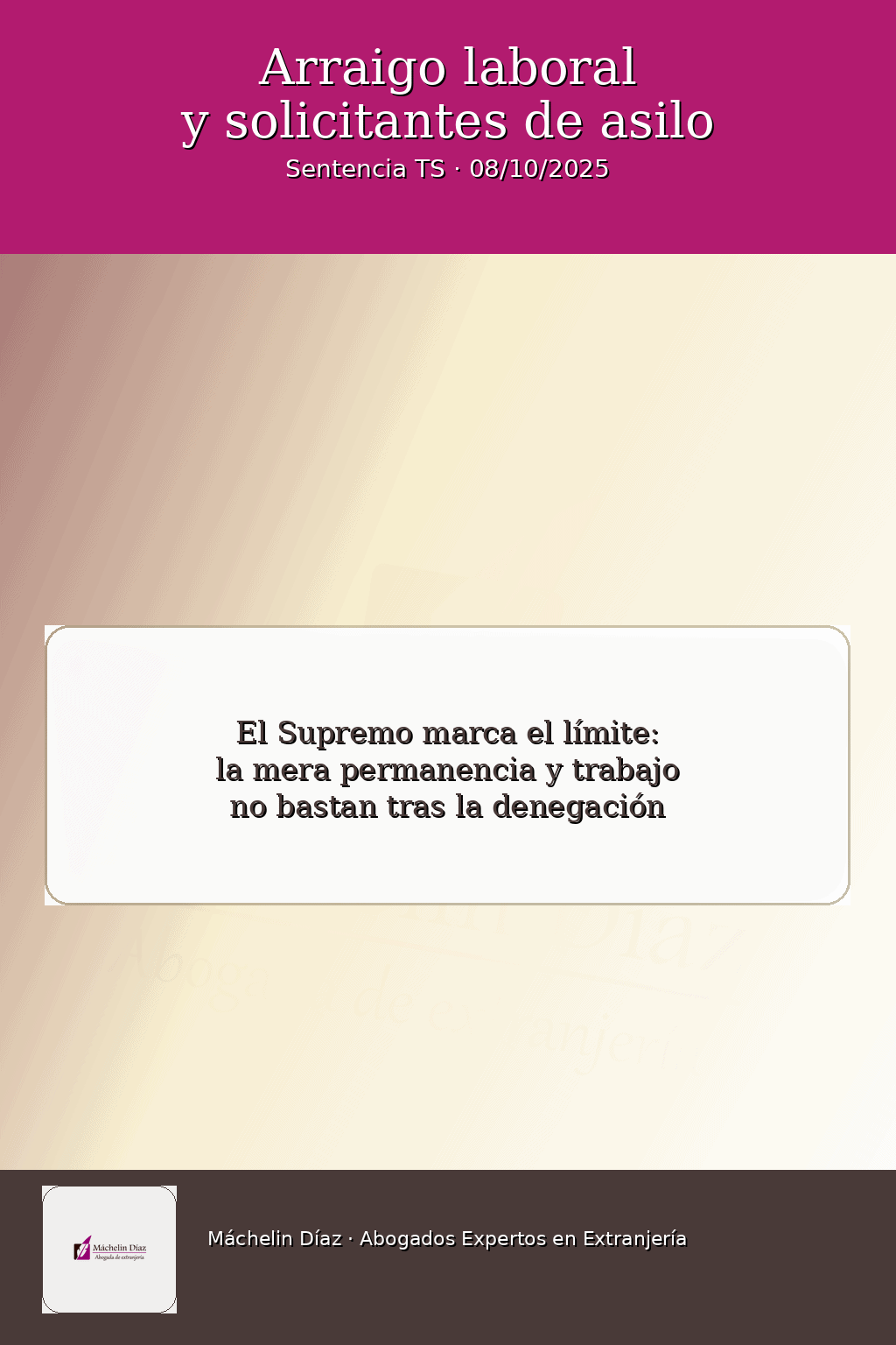 El Tribunal Supremo se pronuncia sobre un escenario muy concreto: solicitantes de asilo a quienes ya les denegaron la protección internacional, y aun así siguen peleando el caso en vía administrativa o judicial. En ese contexto, la sentencia afirma que la mera permanencia y trabajo en España durante ese periodo no puede usarse para conseguir residencia por arraigo laboral.