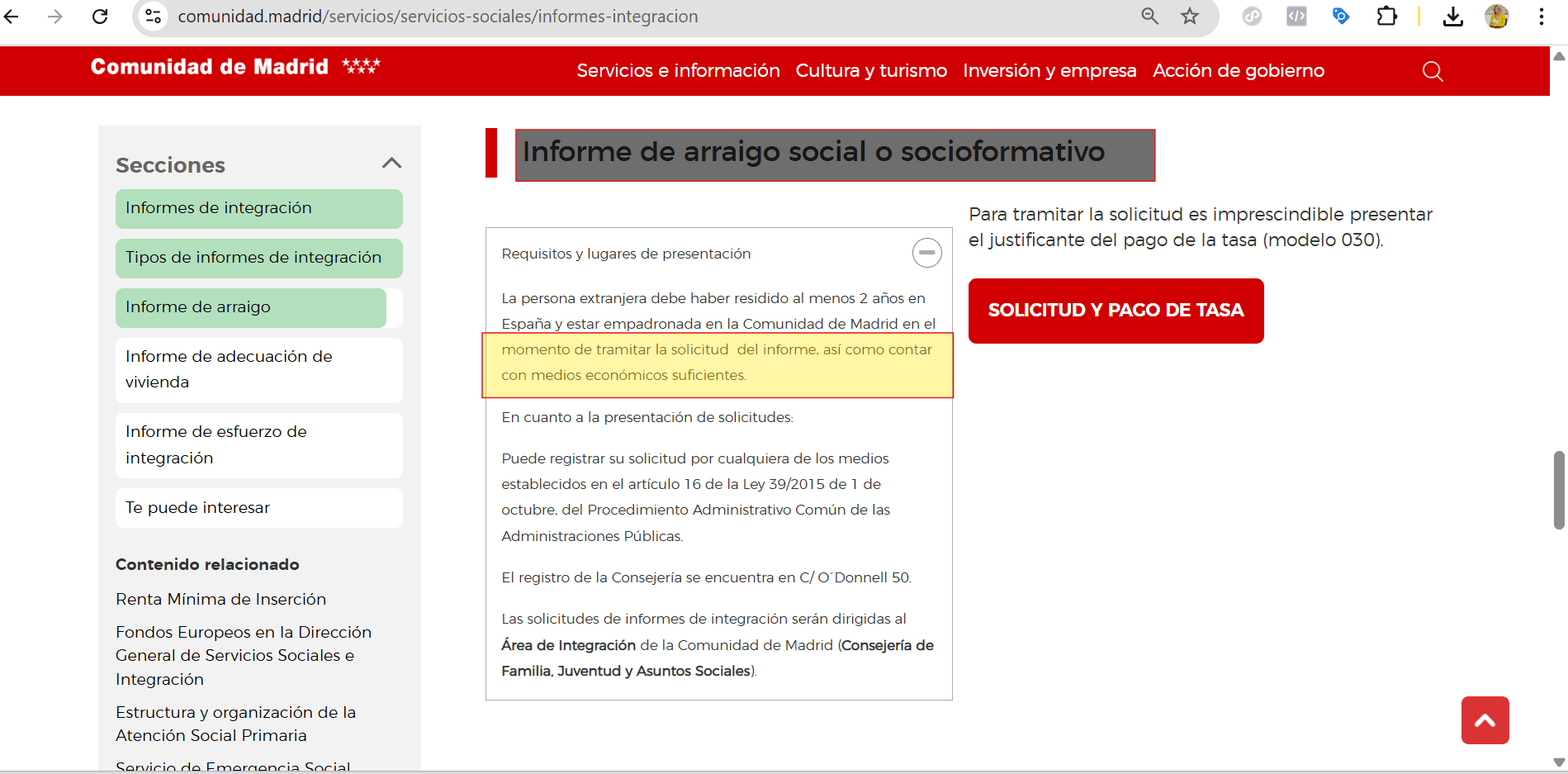 “La solicitud de informe de arraigo socioformativo NO conlleva el pago de tasa y es necesario acreditar la formación (en las enseñanzas previstas por la normativa) mediante matrícula, certificado de estar cursando dicha formación o justificante de haber presentado la solicitud de admisión correspondiente.”